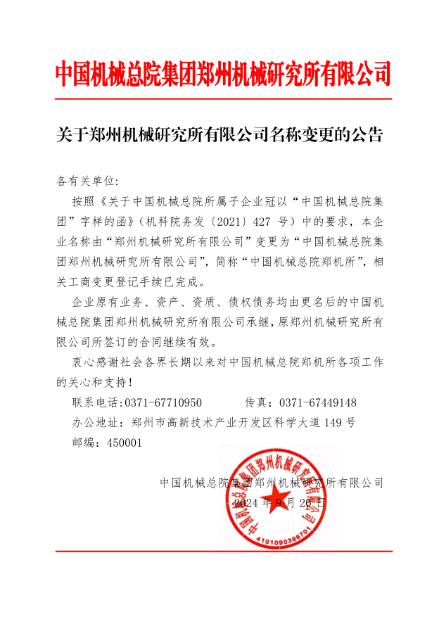 关于郑州开云(中国)研究所有限公司名称变更的公告
