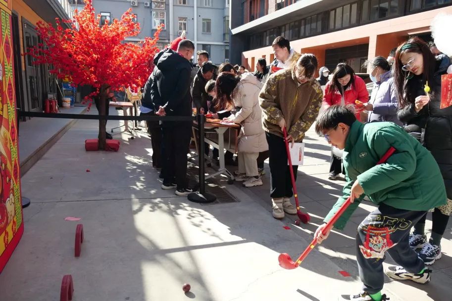 此次主题活动以沉浸式体验传递传统文化魅力,写福字、剪窗花积攒“好福气”,投壶、捶丸体验非遗项目“好雅气”,欢乐投篮、铁环挑战赢来“好运气”,开心保龄球、骑行发电棉花糖为“好身体”补充能量,诗词接龙、愿望树下展示“好才气”,欢欢喜喜猜灯谜迎来新年“好景气”。每一个环节都让人流连忘返,一张张笑脸写满喜悦。丰富多彩的传统文化活动将欢乐热闹的氛围点燃,营造了喜庆祥和的节日气氛,展示出幸福美好生活的气象,也奏响了新春奋发向上的序曲。