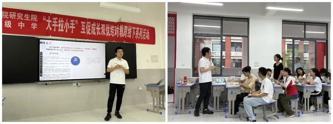 聚焦高中生核心需求,研究生志愿者沈昕祺、李洲熠结合自身成长经验,带来“学霸引擎”学习方法分享。他们系统讲解了时间管理、精力分配与知识体系构建等实用策略,为学生们提供了可借鉴、可操作的学习路径,助力提升学习效能。