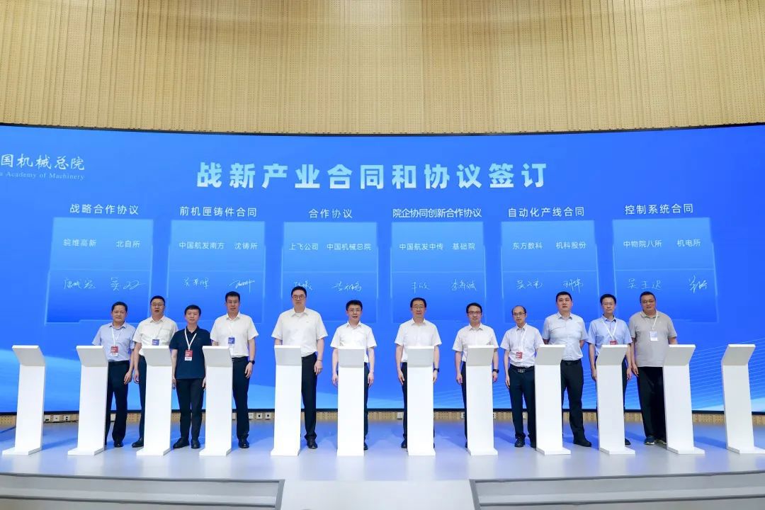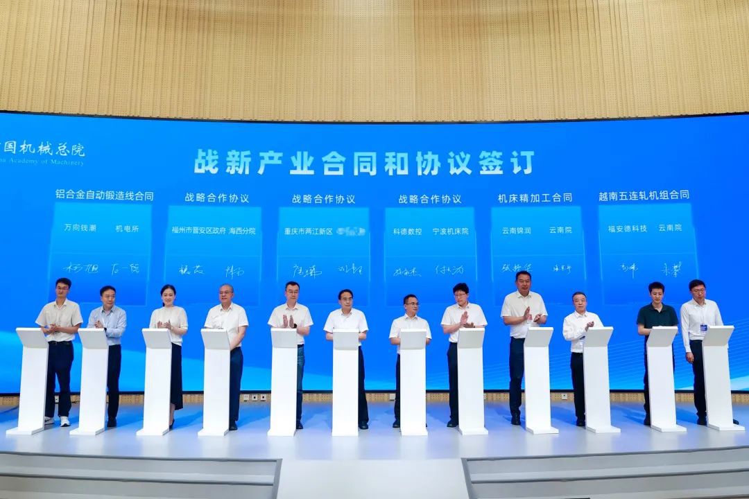 会上,中国开云(中国)总院集团及所属公司沈铸所、北自所、机电所、机科股份、基础院、海西分院、宁波机床院、云南院等单位分别与中国商飞上飞公司、皖维高新、中国航发南方、中国航发中传、东方数科、中物院八所、万向钱潮、科德数控、云南锦润、福州市晋安区政府、重庆两江新区等12家企业和地方政府签署战新产业合同及协议。