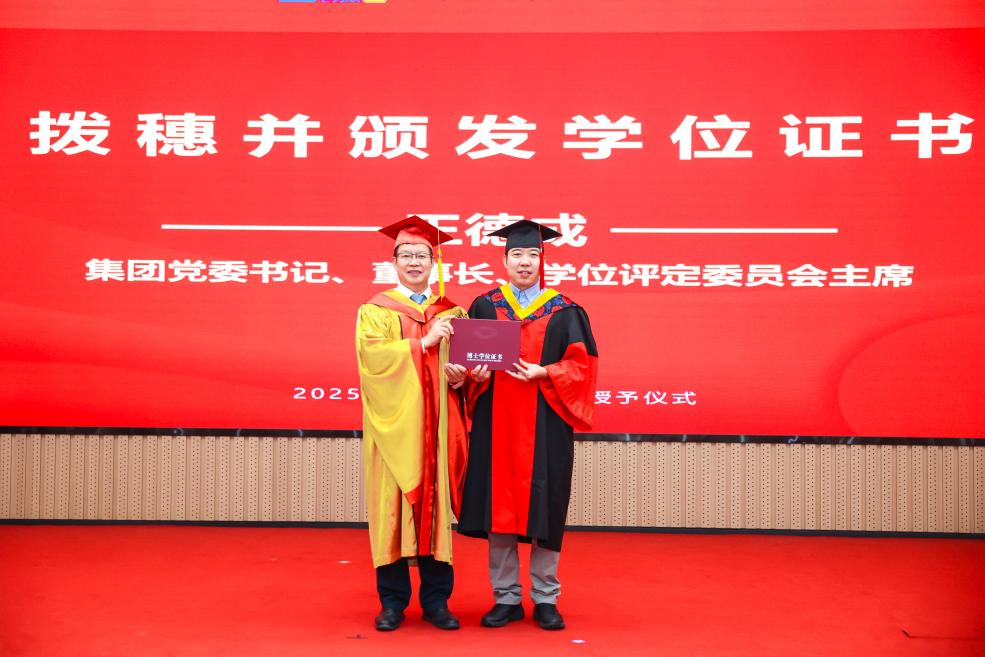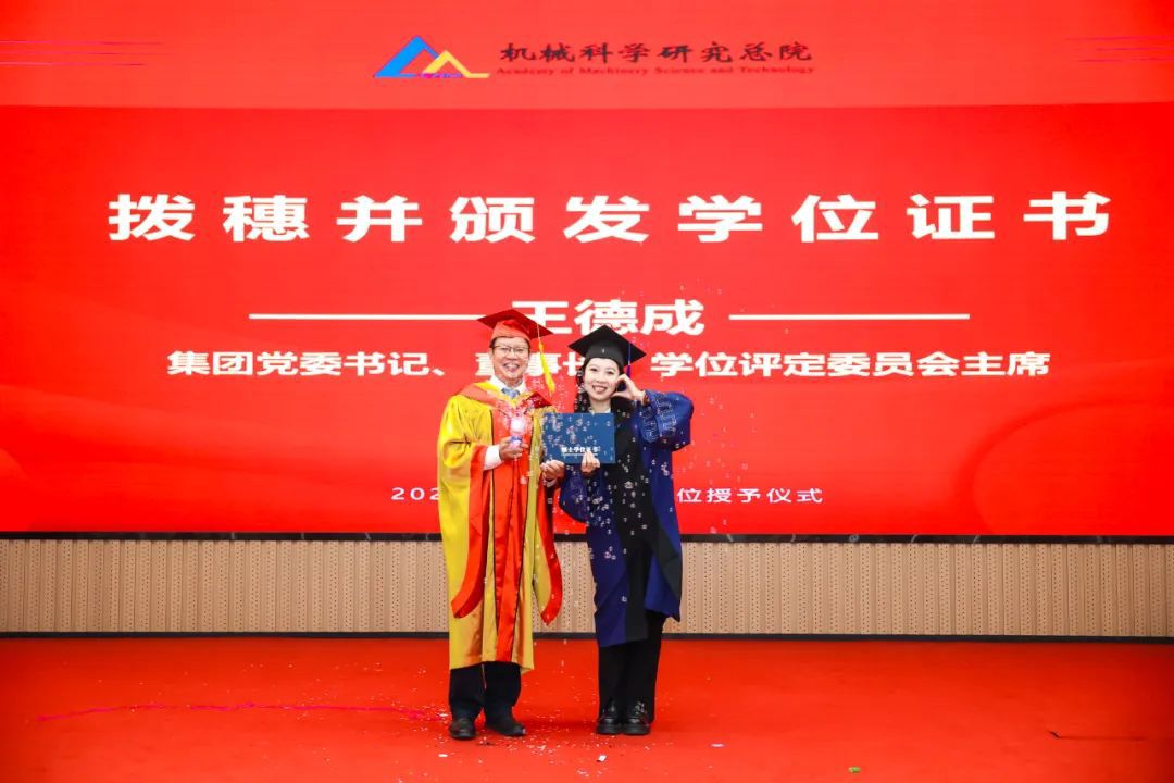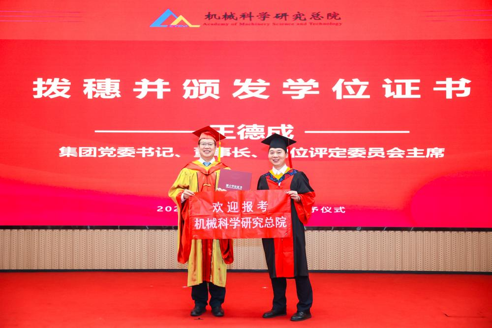 李爱国宣读了《开云(中国)科学研究总院2025届毕业生学位授予决定》,王德成为每位毕业生拨穗正冠并颁发学位证书。