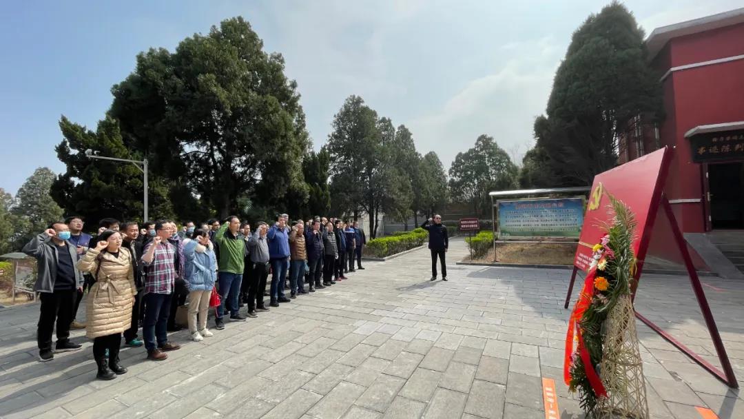 为深入开展党史学习教育,传承党的优良传统。当日下午,全体党员干部来到豫西抗日革命根据地,开展爱国主义学习教育活动,向革命烈士敬献花篮、重温入党誓词、聆听抗战事迹,缅怀革命先烈的丰功伟绩。